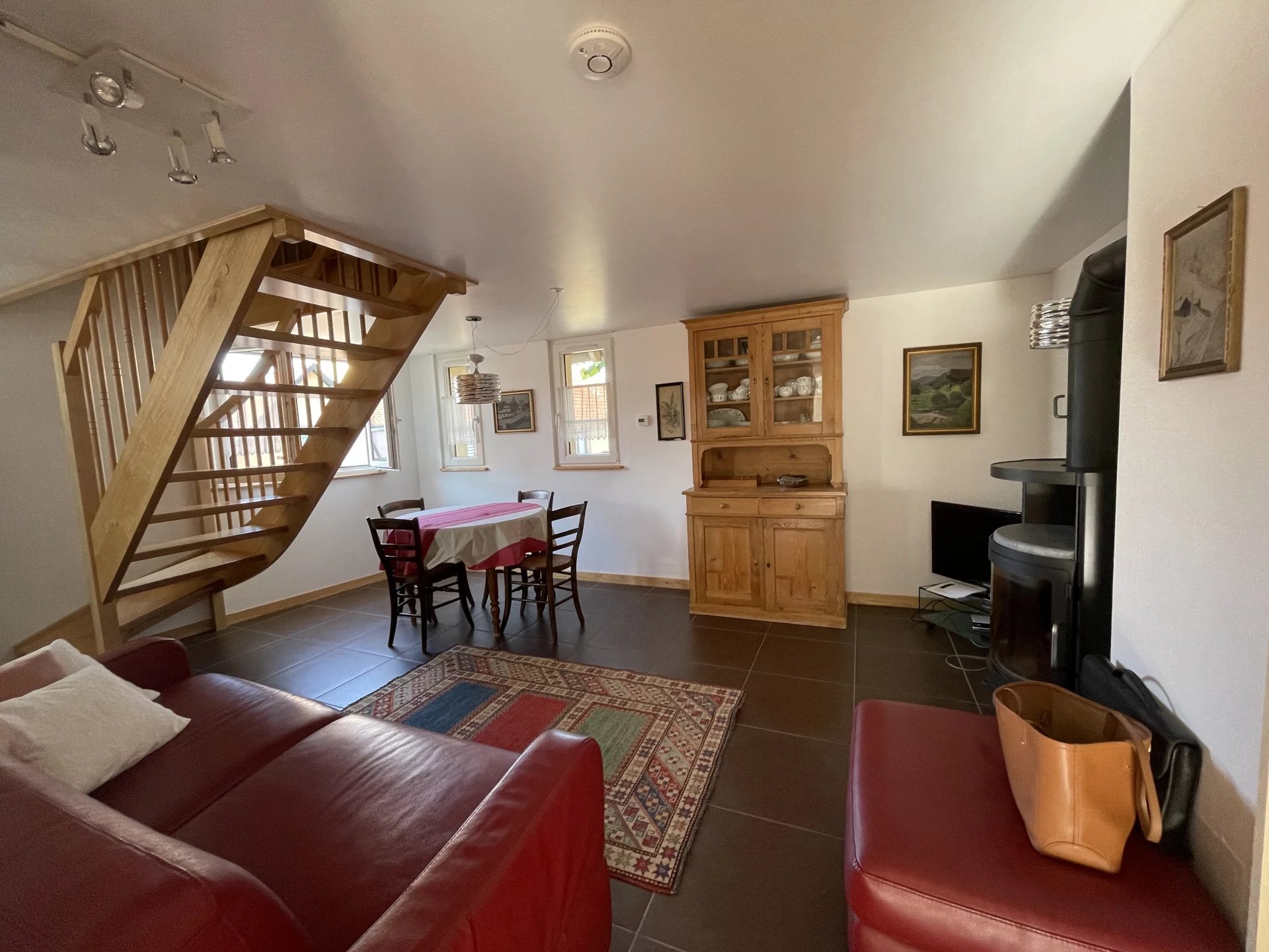 Bel appartement 2 Pièces duplex meublé avec une entrée, un salon avec poêle à bois, une salle d'eau, une cuisine équipée, une chambre. Loyer 595 € + 100 € de charges chauffage inclus. Votre contact Isabelle VINCEROT 06 27 32 07 35.